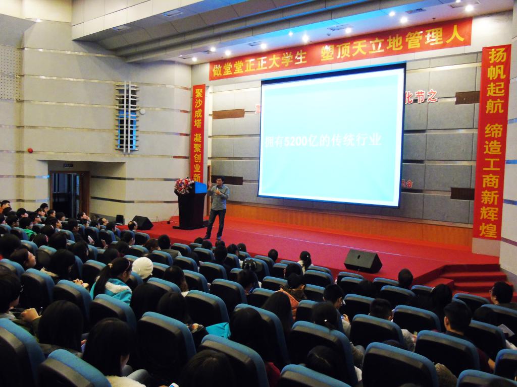 在其后的主题演讲环节,陶石泉先生以诙谐幽默的语言,结合自身的创业历程给现场听众带来了很多新鲜的观点,他以“文艺范”的语调讲述了创业的方法,他说:“所有天马行空的想法和脚踏实地的执行,只为一个文艺青春的梦想”,有梦想,就要趁着青春努力实现。针对大学生的现状,他认为当代大学生基本可以概括为:“想法有余,行动不足;理想有余,能力不足;激情有余,思维不足;心高有余,见识不足;偏见有余,辩证不足;自我有余,利他不足。”