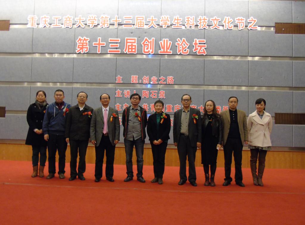 演讲之后,嘉宾与现场的观众进行互动,为同学们解答疑惑。在陶石泉先生为重庆工商大学第13届创业论坛题词之后,本届创业论坛开幕式也落下了帷幕。