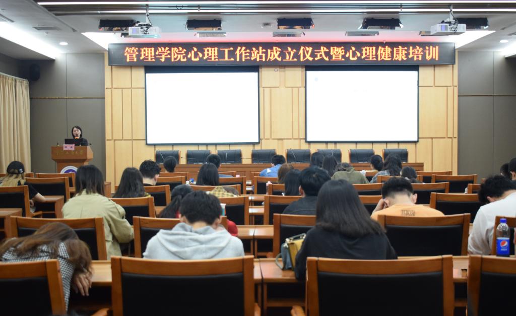 5月15日12:30,管理学院心理工作站成立仪式暨心理健康培训在图书馆第一会议室顺利召开。管理学院分党委副书记、纪委书记王静,学团办主任谭予涵,党委学工部大学生心理健康教育与咨询中心钟歆老师出席了本次会议。本次会议由管理学院负责心理健康工作的何祖润老师主持,管理学院各班心理委员、班长和团支书也参加了此次培训。
