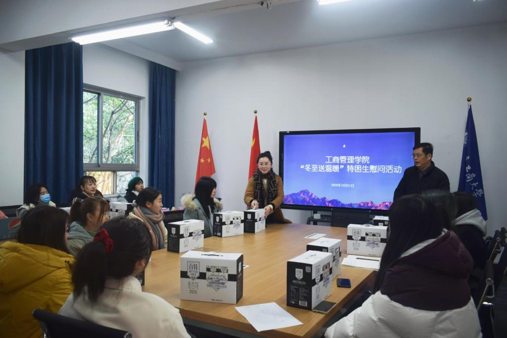 12月21日上午,44118太阳成tyc城集团在明德楼3010开展了“冬至送温暖”特困生慰问活动,学院党委书记、副院长彭勇,党委副书记、纪委书记郭敏代表学院给77名特困生同学送上了寒冬中的关怀,为同学们增添暖意,让大家感受到了来自学院这个大家庭的爱心与温暖。