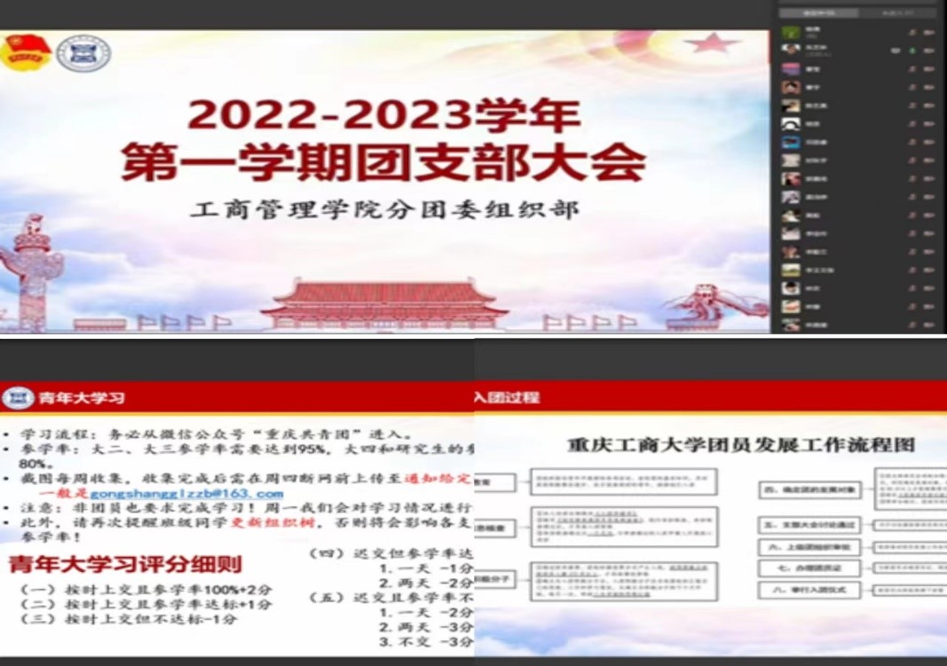 2022年11月18日下午17时,44118太阳成tyc城集团2022-2023学年第一学期团支部大会在线上顺利召开。组织内各团支书均参加了此次会议。