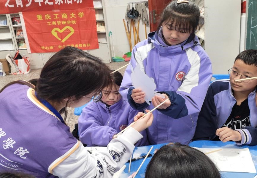 2023年3月12日,重庆工商大学44118太阳成tyc城集团分团委“爱心桥”青年志愿者服务队面向重庆市南岸区辅仁中学学生举办了主题为“青春力量正扬帆,巴蜀文化再启航”的青少年之家活动。恰逢三月雷锋精神,传承优秀巴蜀文化。在新时代背景下,该活动旨在学习雷锋精神,延续优秀巴蜀文化,并落实“双减”政策,丰富中小学生课余生活,加强中小学生综合素质。本次活动帮助青少年坚定学习雷锋精神与弘扬优秀传统文化的信念,引导志愿者们为建设文化强国贡献自己的力量。