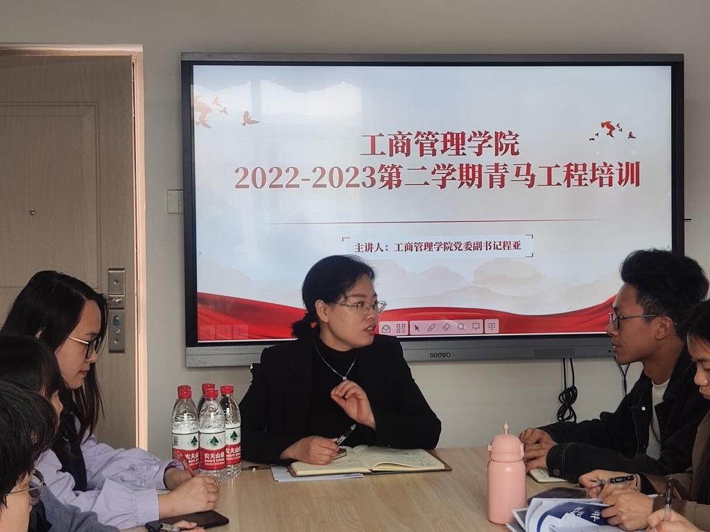 在第一期青马工程培训会上,程亚书记提出大学生干部应该团结一心、做好老师与同学之间的沟通桥梁。书记根据文件指出,为推进共青团工作进行,可以在各个班级设置社会实践委员、志愿服务委员、心理健康委员等加强与干部之间的交流 培养大学生们的社会实践能力、关注大学生们的心理健康问题。最后她提到,大学生干部应该学会思考、学会学习,找到工作的目标、重点,提高相应的工作技能,积极为大学生们服务,在埋头苦干的同时也要仰望天空。