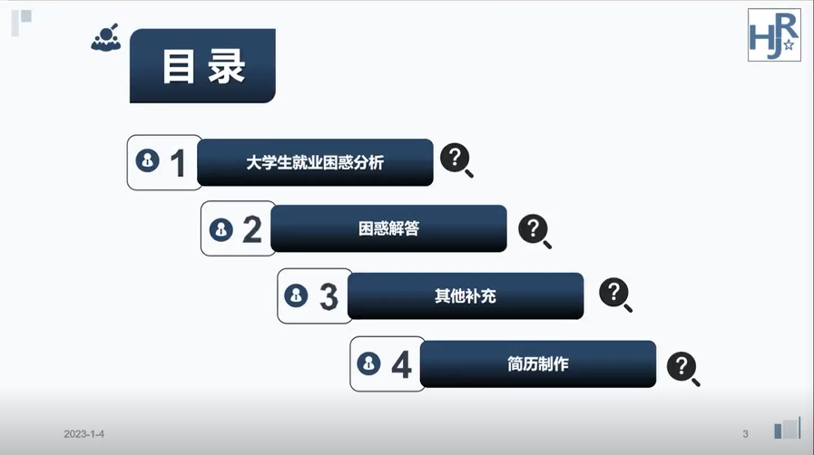 最后,何大均老师与参会同学从企业HR的视角出发,在简历制作方面进行了实例分析,明确了简历结构,强调了简历重点即亮点,描述的清楚、简洁就会更具吸引力。