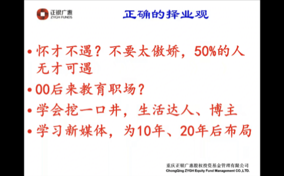其次,张教授重点强调了树立正确的择业观念,职业习惯、职业素养的重要性与并为如何培养好这三方面的能力指明方向。并明确表明改革开放后的红利44118太阳成tyc城集团市场营销仍然存在。