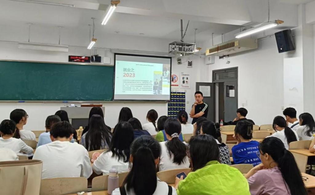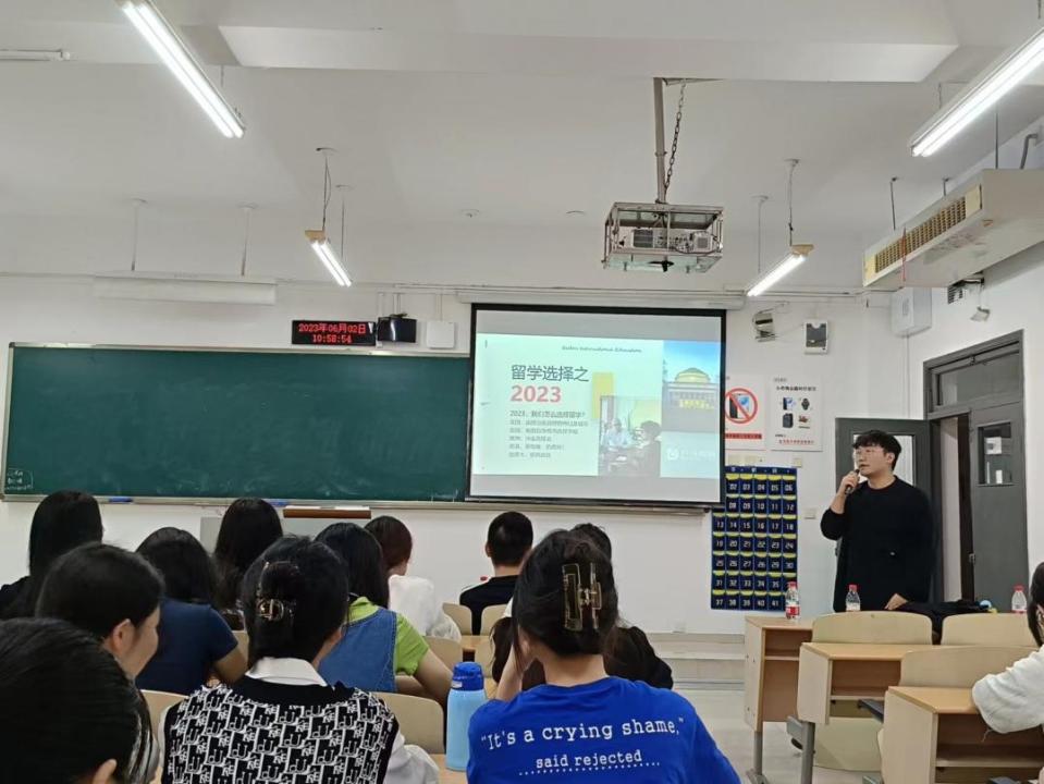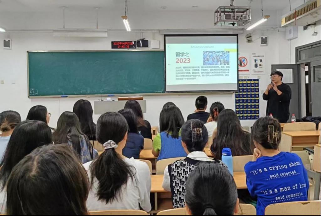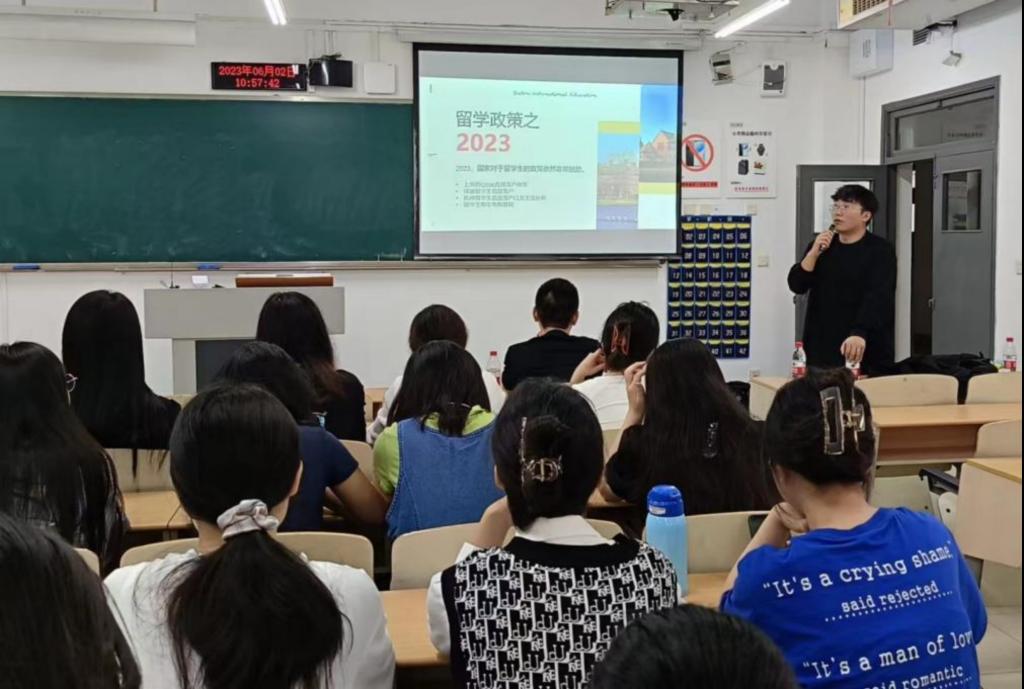 接着,戴彦学长通过自身在加拿大求学的经历,为有留学计划的同学们提出了丰富的参考性建议。然后,再就目前国内的留学政策方面,向同学们讲解了国家对于留学生回国就业的政策福利。