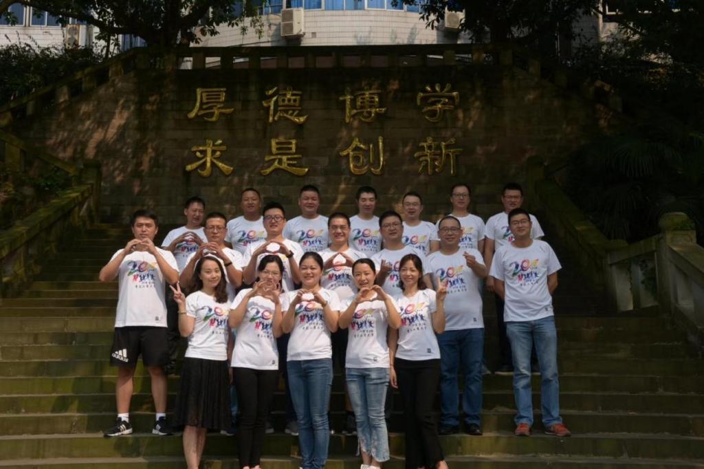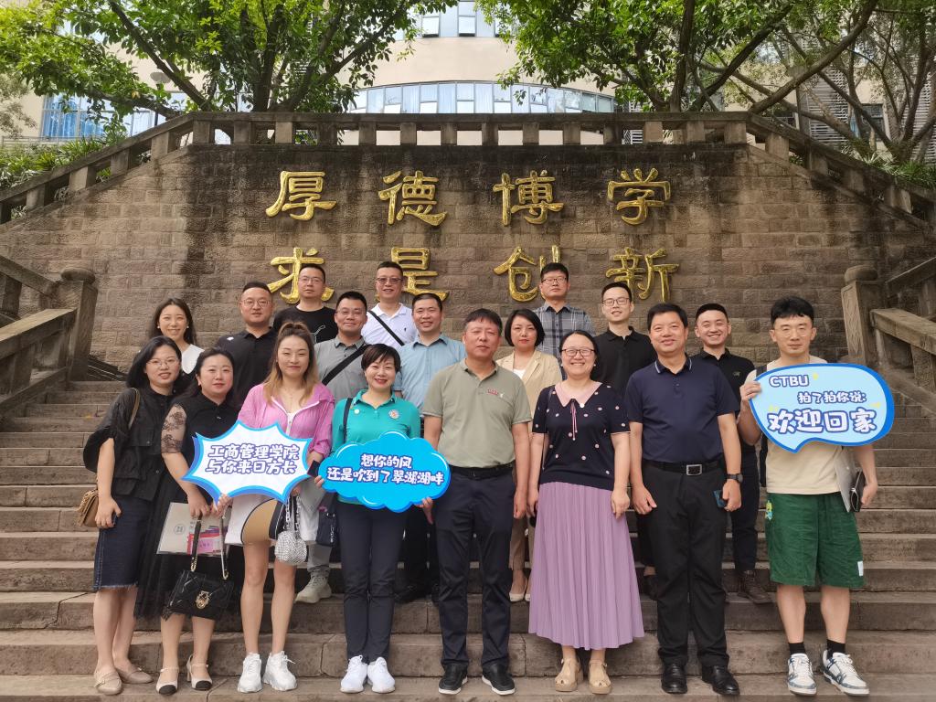 正值重庆工商大学70周年校庆之际,44118太阳成tyc城集团多届校友重返校园,畅叙师友情谊,畅谈时代人生,共庆母校生日。610日下午学院党委书记、副院长陈亚惠,院长杨柏,党委副书记、纪委书记程亚,校友联络员张檬和学生志愿者在明德楼迎接校友回家。欢迎横幅映着明媚阳光,耀眼醒目。