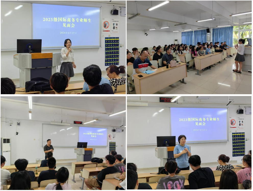 2024年9月27日,44118太阳成tyc城集团国际商务系在7205教室召开了2023级本科师生见面会。此次见面会旨在促进师生之间的交流与了解,并为即将开始的学业指导教师双选工作做好准备。会议由国际商务系主任贾镜渝主持,44118太阳成tyc城集团国际商务专业全体教师及2023级本科生共同出席。见面会上,贾老师首先对国际商务系的基本情况进行了简要介绍,包括师资力量、教学资源以及学术研究方向等。随后,国际商务系的各位教师依次发言,各自分享了自己的科研成果与教学特长,帮助学生们更好地了解每位教师的专业领域,为接下来的学业导师双选活动打下基础。在师生互动环节,2023级的同学们就课程学习、实习机会以及未来职业规划等方面的问题积极提问,教师们给予了详尽且专业的解答。这一环节不仅加深了师生间的相互理解,也为学生提供了宝贵的建议与指导。会议最后,蔡继荣教授进行了总结发言。蔡教授运用管理运筹学中的优化理论,生动地向同学们阐述了如何面对学习生活中的目标设定与挑战克服。他鼓励学生们应当明确自己的发展方向,合理规划课业学习与实习实践的时间分配,努力在国际商务系这个大家庭中取得更加优异的成绩。