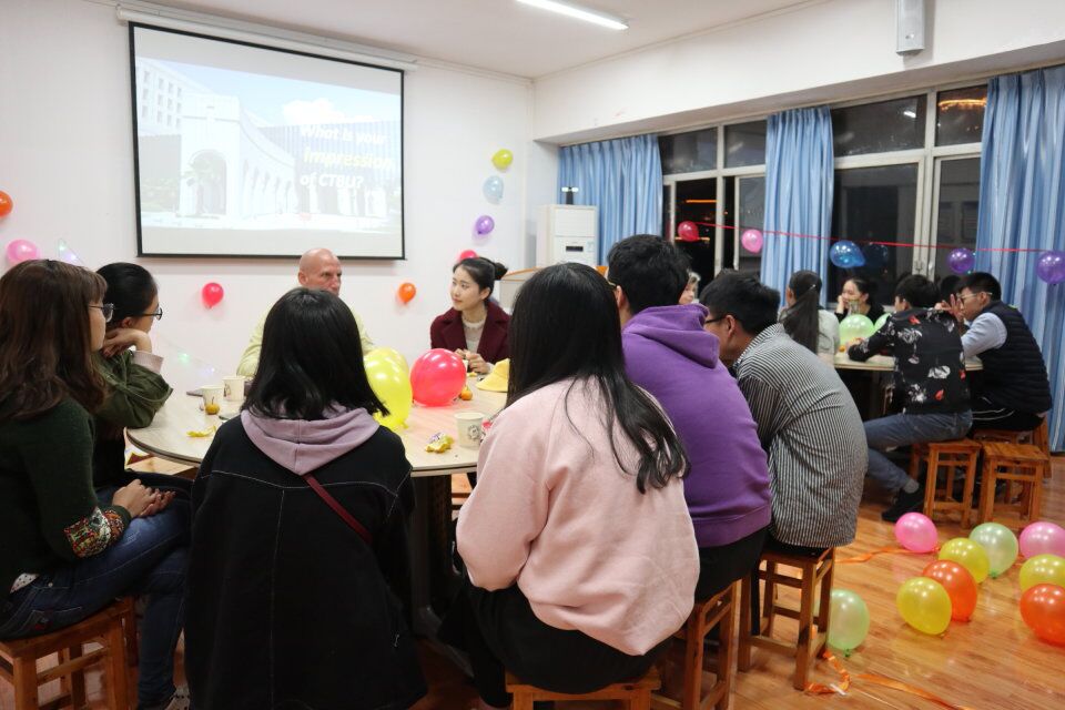 参加本次活动的有来自加拿大的外教老师Janice女士和Craig先生,以及2018级工商管理国际教改班全体同学。本次活动的主题为Why Do You Choose CTBU(你为什么选择CTBU)。
