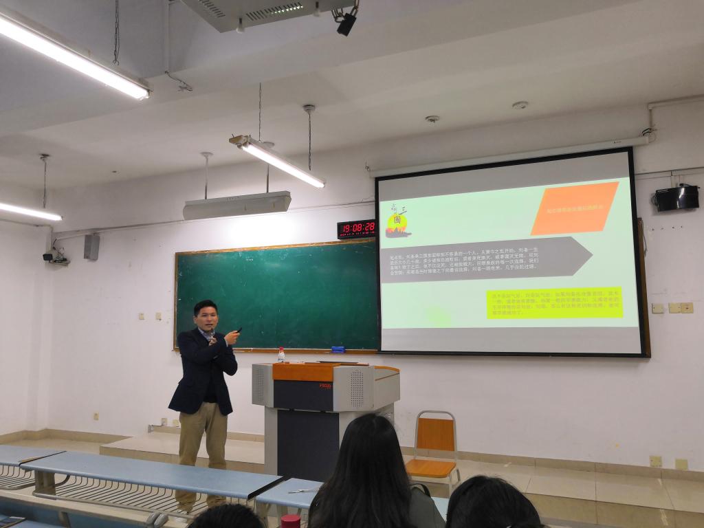 11月7日19:00,青年企业家、作家、重庆欧美同学会副会长徐鹏先生走进创业学课堂,作了以《从三国人物学习如何创新创业》为主题的讲座。本次讲座由任课教师邓辅玉主持,学校百余名学生参加了此次讲座。
