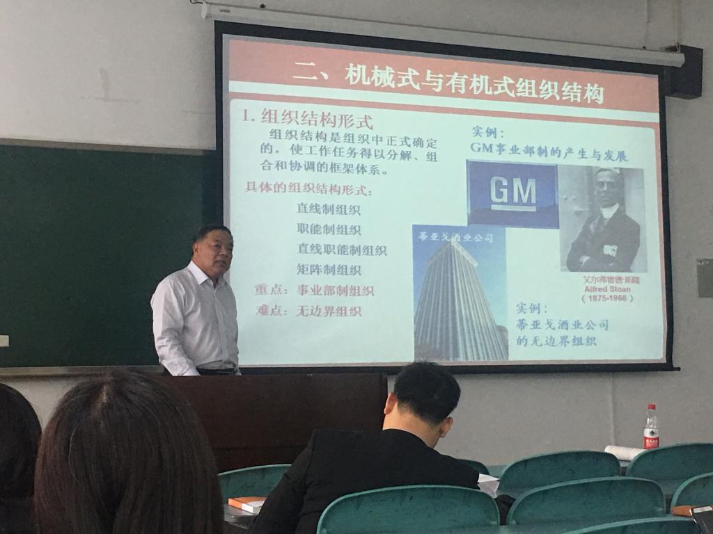 下午的第二阶段,受邀参会的南京大学法学院范健教授、吉林大学法学院房绍坤教授、山东大学管理学院徐向艺教授、南京师范大学教育科学学院项贤明教授和北京大学艺术学院彭吉象教授分别作为教育部马工程《民法学》、《商法学》、《管理学》、《教育学原理》、《艺术学概论》等五部重点教材编写课题组的专家代表,在五个会场开展了相应的重点教材集中培训。工商系的全体参会老师在培训现场认真学习了徐向艺教授分享的“马工程《管理学》教材建设与教学探讨”的内容,并对马工程《管理学》教材中知识点的更新、教材的框架结构等一些问题现场与徐向艺教授进行了交流。