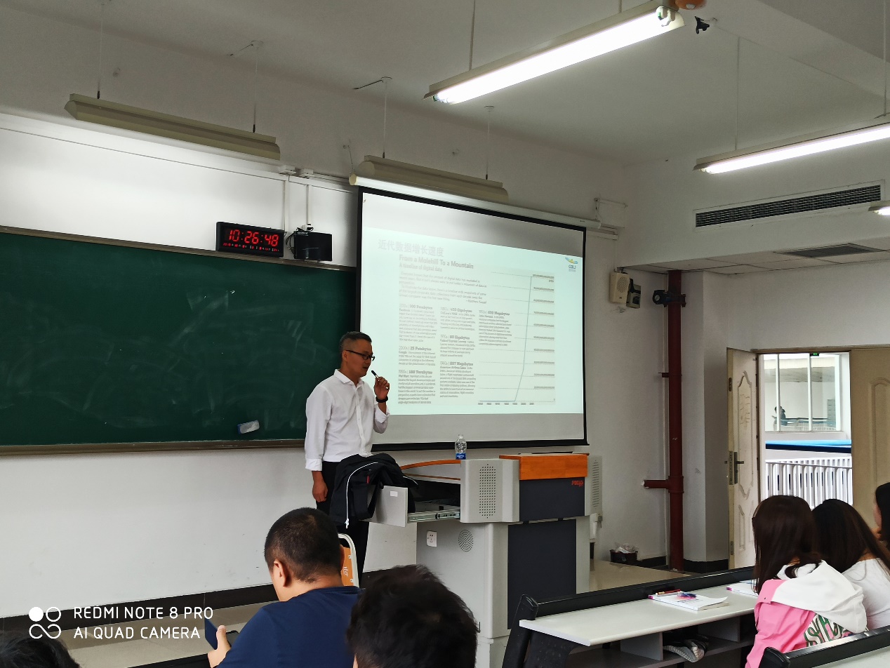 109日上午1020分,来自两江新区产业研究院的何入海老师(高工)在管理学院的盛情邀请下,走进了2017级信息管理与信息系统专业《IT项目管理》的课堂中,为同学们讲解数据产业的未来发展。
