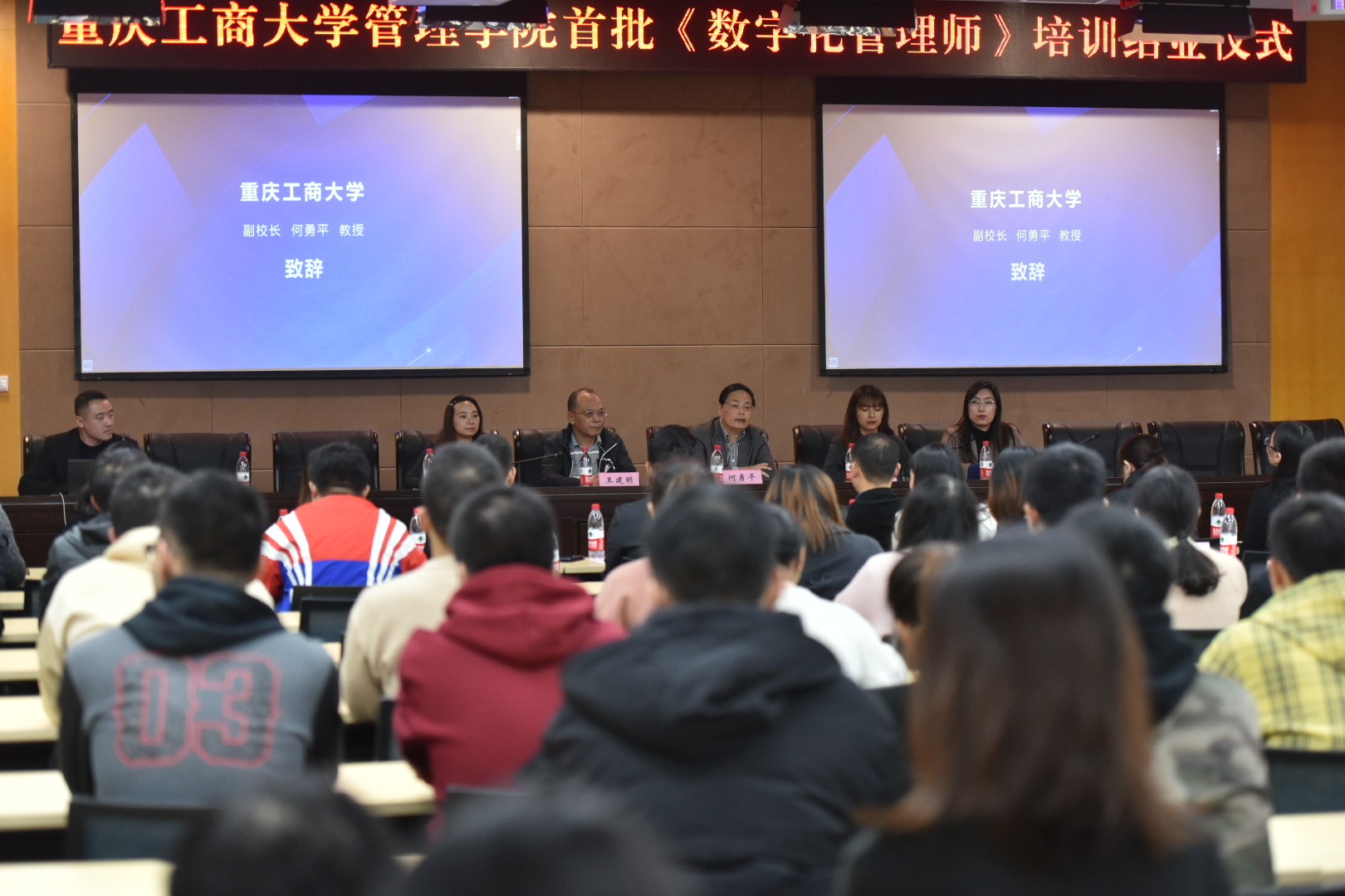 10月28日下午,管理学院携手阿里巴巴集团旗下的阿里钉钉事业部联合举办的“数字化管理师”首期培训班结业仪式暨校企双选会在图书馆多功能厅举行。何勇平副校长、阿里巴巴集团钉钉事业部重庆运营总监豫立女士、阿里巴巴集团钉钉事业部钉钉大学项目总监骆璃女士、管理学院分党委书记王建明、副院长周莉、企业代表、培训班学员出席了活动。