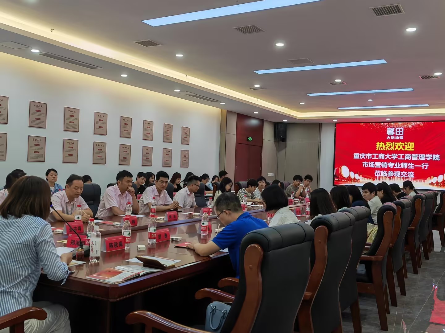 企业方向同学们介绍了爆火锅的发展历程、企业定位、特色优势、未来展望、员工满意以及顾客满意等内容,全方面展现了爆火锅整体的品牌形象。在仔细聆听企业人员的介绍之后,同学们与企业方深入进行讨论和交流,企业方耐心细致地解答了同学的疑惑,交流氛围良好。随后企业方带领同学们参观“爆火锅”大坪店、杨家坪店。渝中区火锅烧烤行业商会会长、“爆火锅”创始人冯龙董事长对师生的到访表示欢迎,表达对大家的殷切期望。在实际的店铺当中,同学们深刻体会到企业的经营理念与竞争优势,调研以同学和老师们合影留念作为尾声,调研结束后,老师和同学们自发进行了宣传。