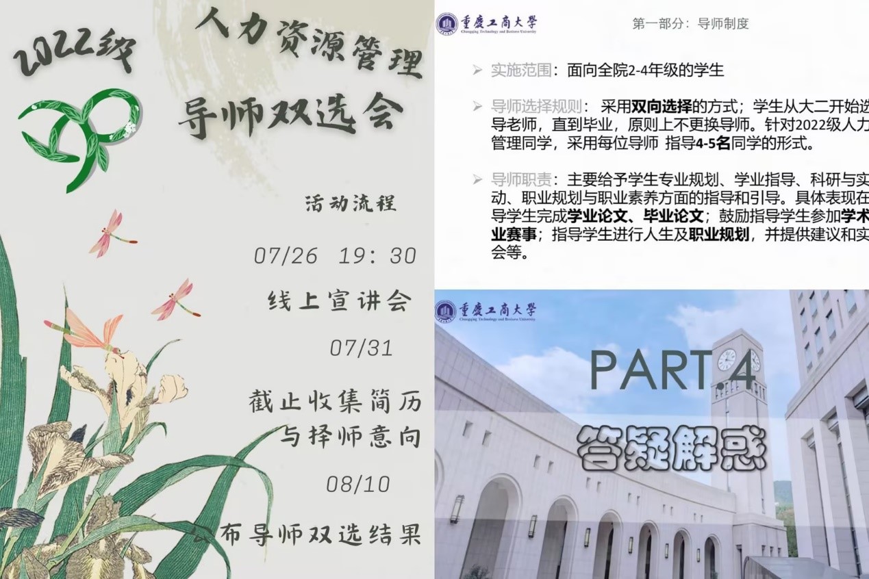 为贯彻落实“三全育人”教育理念,充分发挥教师在本科生思想道德、学业指导、专业引导、职业规划与人生规划中的主导作用,通过近1个月的工作,成功完成了人力资源管理系2022级本科导师双选工作。