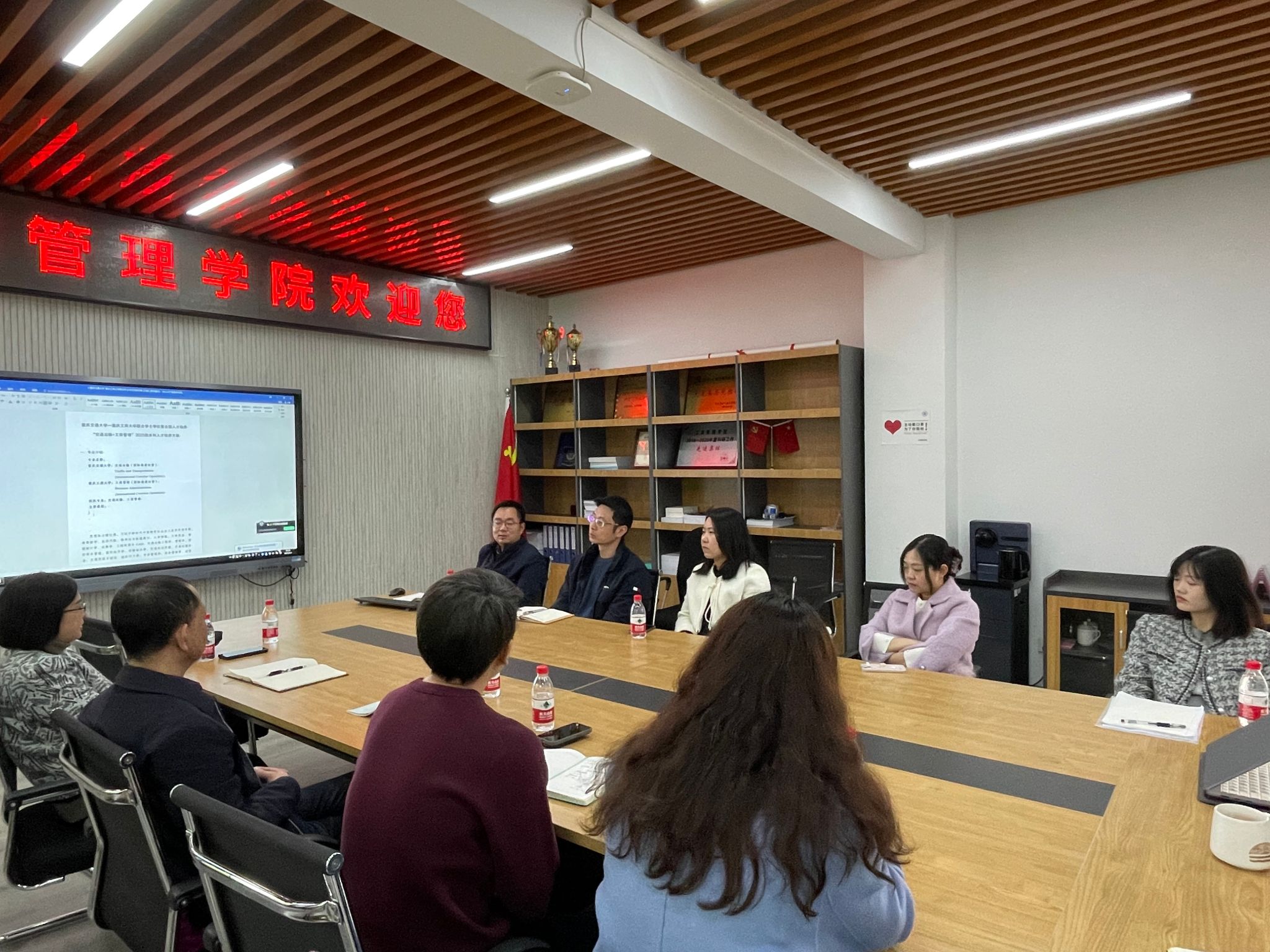 与会双方介绍了各自学院专业特色,班级设置,学生就业方向,专业发展需求等情况,寻求专业融合发展的着力点。随后,围绕双学位建设模式、课程体系设置、师资队伍组建等方面展开讨论。外国语学院提出“语言基础课+专业方向课”的课程设置模式,将语言融入到管理基础课程,改革传统教材等设想。