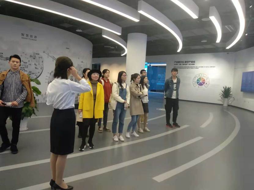 2018年11月1日,重庆工商大学管理学院2017级企业管理专业8名研究生在唐敏老师的带领下,走进了位于重庆市两江新区黄山大道两江幸福广场的大数据智能化展示中心,开展了为期半天的《大数据管理专题》移动课堂。