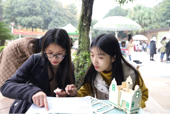 而“回收纸箱,变废为宝”建筑建造PK 赛是利用由“回箱计划”所收集到的纸箱进行再利用,制作成建筑小装饰;“智绘梦想,创享青春”咨询小诊所则以收集相关创业问题为依托,后期集中处理其问题为手段,为广大需要创业的同学服务。