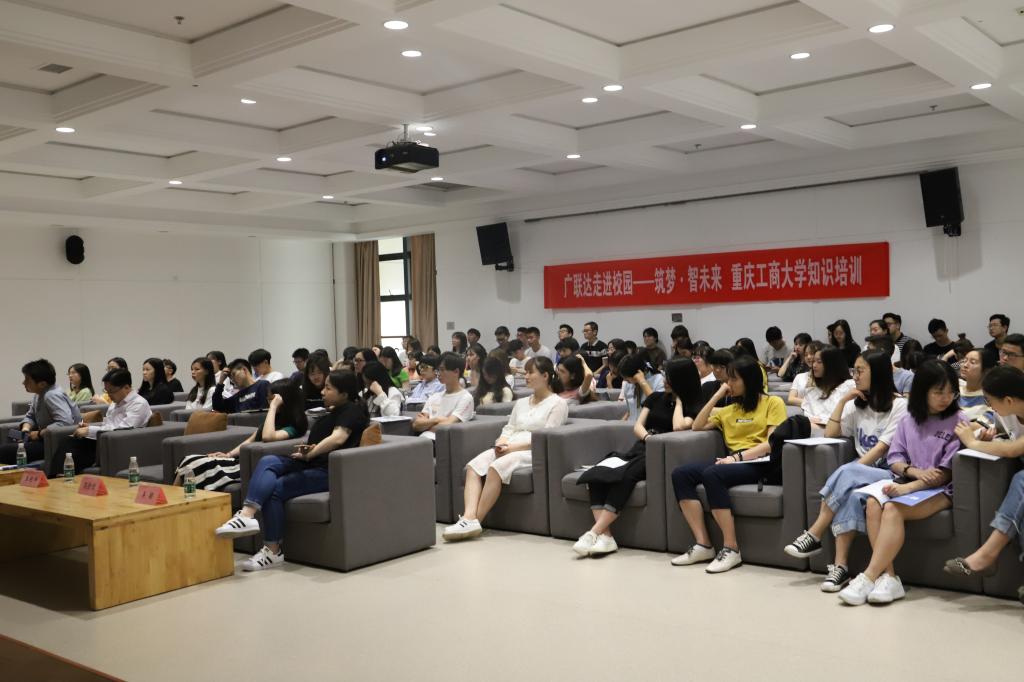 为加强校企合作交流,积极响应教育部办公厅关于实施一流本科专业建设“双万计划”,2019年6月13日下午6点30分,广联达科技股份有限公司重庆分公司与重庆工商大学管理学院工程管理系、重庆工商大学BIM协会于南岸校区图书馆试听阅览室联合举办“广联达走进校园——筑梦·智未来BIM建造以及数字培训会”。出席本次活动的嘉宾有广联达科技股份有限公司重庆分公司HR–BP王艳玲女士,项目高级实施经理孙杰先生以及高级讲师简劲偲女士,重庆工商大学审计处工程审计科科长、造价专家、工程管理系教师肖兵。