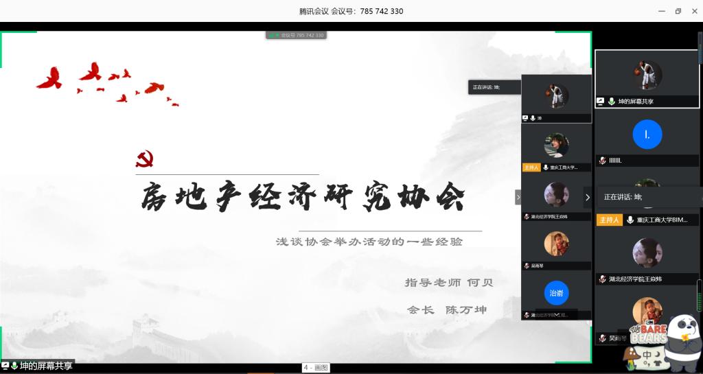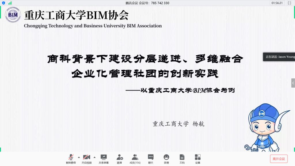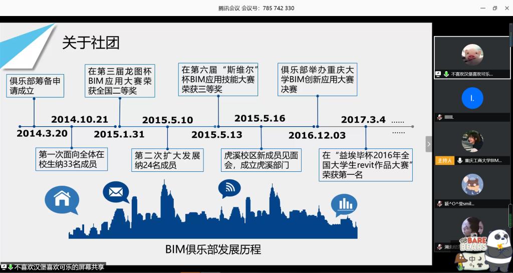为进一步加强高校社团协作,找准社团发展方向,4月25日,由重庆工商大学管理学院主办、工程管理系承办、重庆工商大学BIM协会协办的重庆工商大学第二届工程管理论坛——2020年高校工程管理社团发展论坛于腾讯会议直播间、企业微信直播间两大平台成功举办。本次活动邀请到重庆大学、河南财经政法大学、南阳师范学院、重庆工程学院共计5所全国高校社团作为主讲嘉宾出席本次论坛,还邀请到南昌航空大学BIM协会副会长韦彩妮、山西建筑职业技术学院学生会副主席朱培良、湖北经济学院工程管理协会副会长付浩、重庆邮电大学移通学院探索BIM工作室会长刘峯君、南阳师范学院龚娟共计7位同学作为探讨嘉宾参与本次论坛,参会院校共计32所,参会人数共计400余人。