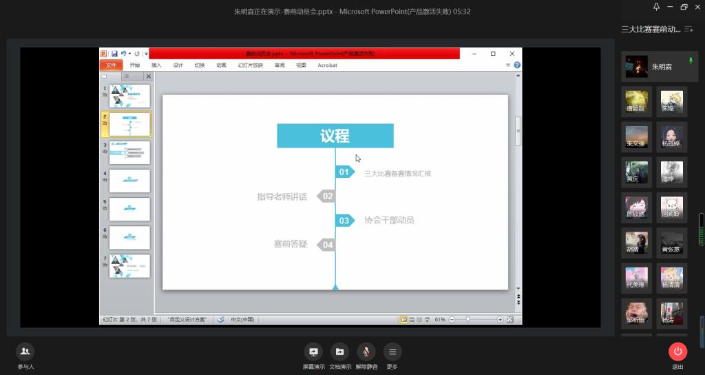 为了解疑答惑和鼓舞参赛同学士气,重庆工商大学工程管理系于5月17日召开广联达大赛赛前动员大会,本次动员会以企业微信线上会议形式召开。工程管理系杨涛老师、大赛指导老师、重庆工商大学BIM协会成员、大赛参与人员参与此次会议,会议参与人数共计116人。