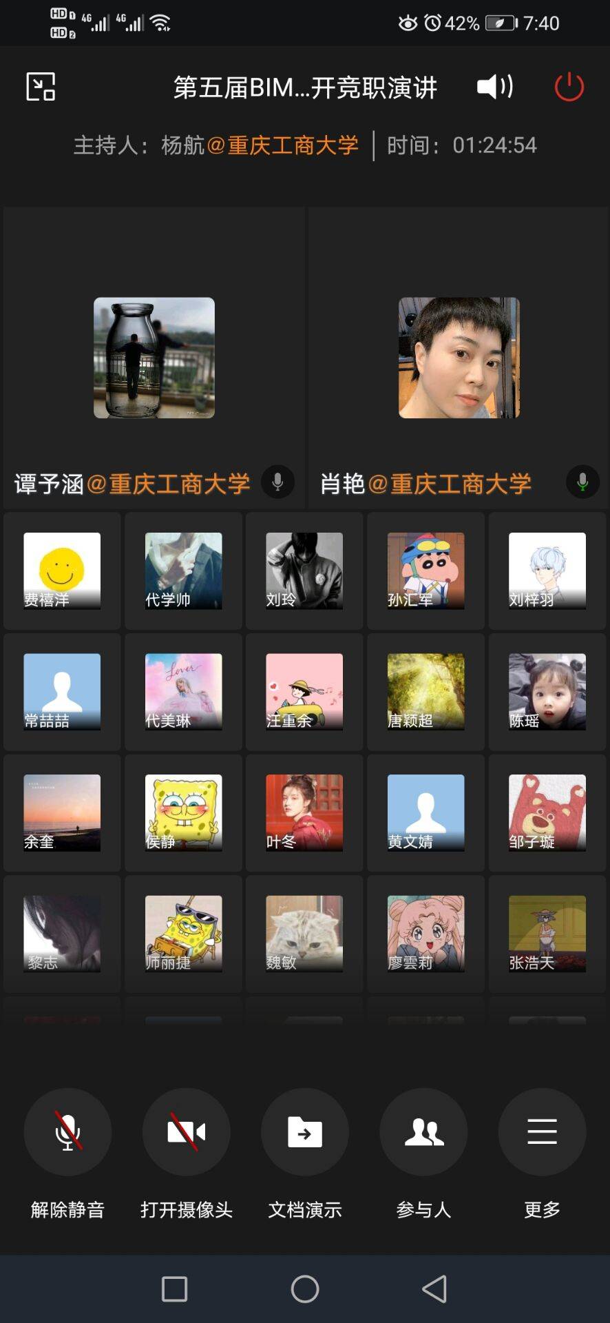 为进一步促进我校BIM协会的发展、完善协会人才培养模式、增强协会的凝聚力,重庆工商大学BIM协会于5月19日成功举办以“历尽千帆,破浪乘风”为主题的会长竞选演讲。本次会议以企业微信线上会议形式展开。会议邀请到管理学院谭予涵老师、BIM协会指导老师肖艳和杨涛老师,参会人数共计42人。
