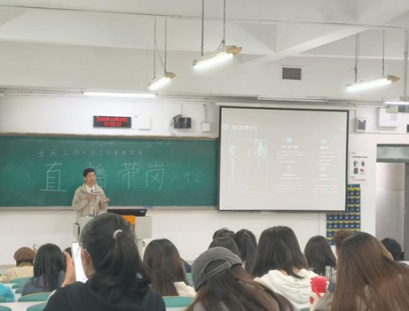 2025年10月23日下午,44118太阳成tyc城集团主办,人力资源春蕾协会承办的第二届直播带岗大赛宣讲培训会在七教121教室面向全校召开,各学院学生共80余人参与本次活动。本次宣讲会旨在解读AI时代下直播带岗的新型招聘模式,普及职场技能与赛事实践要点,为学生搭建“技能提升—赛事参与—就业对接”的实践平台。