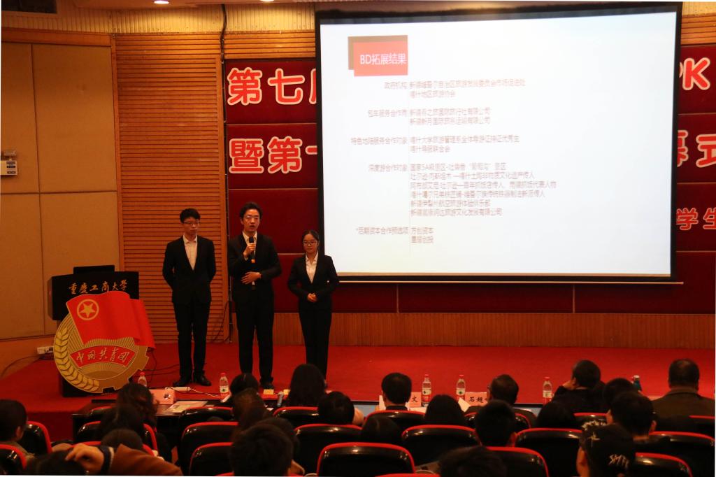大会伊始,管理学院分党委书记王建明为本次活动致辞,总结了第十六届创业论坛前期的喜人成果,同时希望大家都能积极参与到本次比赛中来,互相学习创业经验,增强高校之间的交流合作。晋级决赛的五支高校团队分别是来自重庆工商大学的疆行路书团队、毛笋团队、IP团队,来自重庆大学的书多多创业团队以及来自西南大学的零跃团队。五支大学生团队分别展示其项目特色,并与专家评委、创业导师、对手团队和现场观众进行精彩提问和答辩。