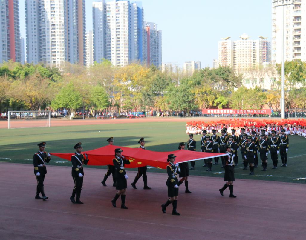 啦啦操队员,用富有激情的舞蹈点燃了运动场上同学们的热情;国旗班方队,腰杆笔直、庄严端正,每一步都激昂有力,展示着工商学子独特的风采。随后而来的是由各学院教师和学生组成的方阵,我院方阵作为第二个出场,步伐整齐、斗志昂扬,无处不散发着青春的活力,彰显着我院师生团结自强、拼搏向上的精神风貌;洪亮整齐的口号展现了运动场上必胜的决心与信心。