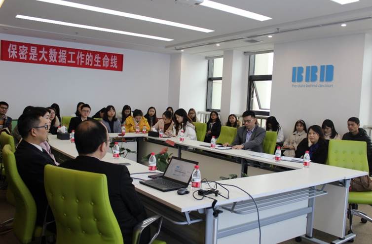 随后,在BBD的会议室,BBD杨春林总经理对我们的到来表示欢迎和问候,同时就BBD的基本情况给大家进行了更为细致的讲解和叙述。在会议正式开始前,由黄院长首先对BBD公司进行了感谢,以及向该公司介绍了关于管理学院的学科教研的相关情况。此后,由杨总对现目前的大数据背景下的BBD发展进行了多梯次、深层次、全方位的讲解,不仅从学生群体上强调了关于能力的培养,也就目前的行业选择提出了希望。