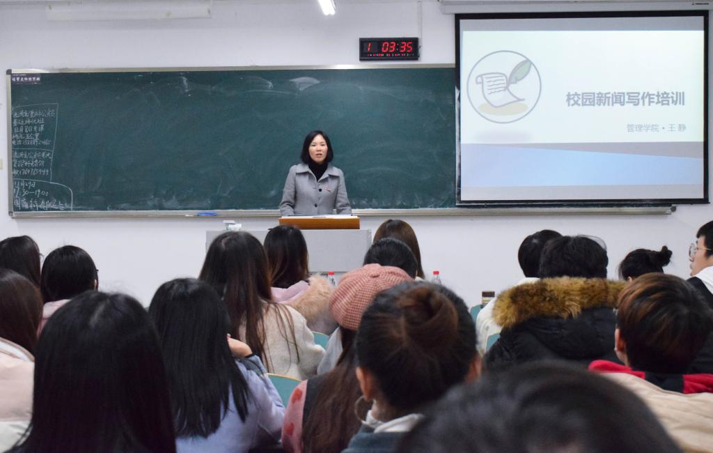 11月29日14时,管理学院2019年青马工程培训会在博智楼7104教室召开。管理学院分党委副书记、纪委书记王静,学工办副主任、分团委副书记谭予涵出席会议。参加培训会议的有管理学院分团委学生会、“爱心桥”义工·志愿者协会、党员服务站和楼管会的主要学生干部。本次青马工程培训由王静副书记结合自身多年的宣传工作经历,通过具体实例从多方面为学生干部们就新闻宣传稿的写作方法和技巧进行相关培训。