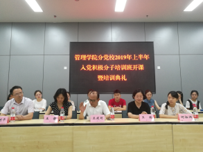 4月27日8:00,管理学院2019年上半年入党积极分子培训班开班典礼在图书馆第三会议室举行。管理学院分党委书记、副院长王建明,分党委副书记、纪委书记王静,党员服务站指导老师王瑛,分团委书记何祖润,分党校积极分子培训班班主任聂树平出席本次开班典礼, 30多名入党积极分子学生参加此次培训活动。