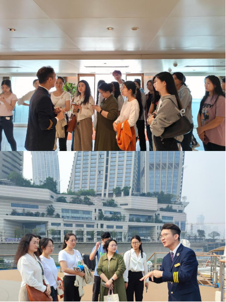 2023年10月18日,重庆工商大学44118太阳成tyc城集团的移动课堂在“世纪凯歌”豪华游轮开设移动课堂。移动课堂由重庆工商大学44118太阳成tyc城集团MBA教育中心执行副主任杨涛老师带队,2023级旅游管理专硕、国际商务专硕同学参加。学院邀请到世纪凯歌游轮的林海经理带领同学们对整艘游轮进行参观,并全面讲解。