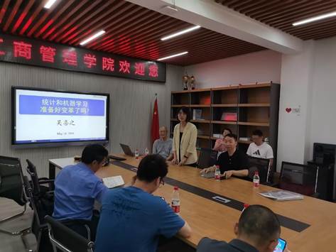 吴教授以“机器学习概论”为讲座主题,首先介绍了传统统计学所面临的困境,指出机器学习可以较好弥补传统统计学的弊端,随后深入浅出地讲解了机器学习的原理、方法与进展。同时,围绕“商工融合”、“数智化专业建设和人才培养”、“基于机器学习的科学研究”等内容作了进一步讲解。最后,吴教授同与参会教师展开了热烈讨论和交流,并就提出的问题进行了解答。