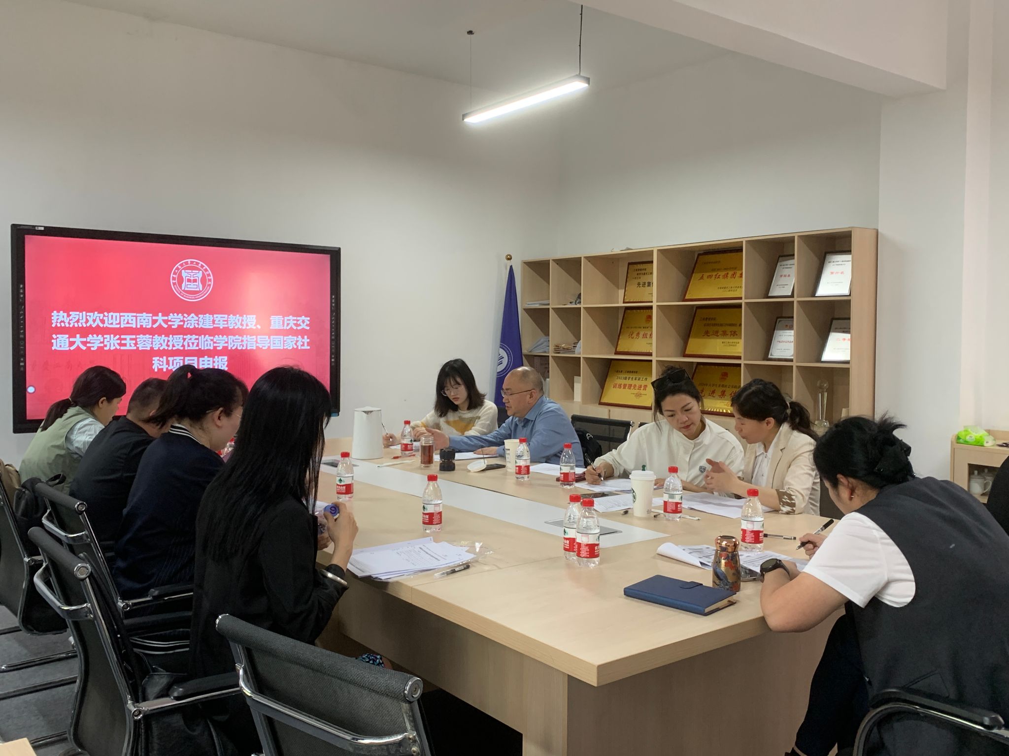 邱继勤副院长对涂建军教授、张玉蓉教授的到来表示热烈欢迎,并就二位教授的主要研究领域以及所取得的研究成果进行了详细介绍。随后,二位教授对参会教师的《国家社会科学基金年度项目申请书》逐一进行指导,就申报书中存在的问题提出了针对性的改进建议。