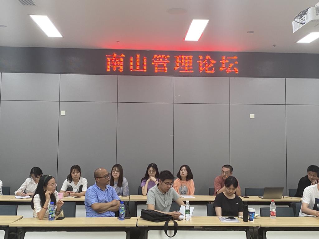 最后的讨论答疑环节,王宏蕾博士对专业老师、同学们提出的疑问进行了探讨和解答,师生积极发问,王宏蕾博士耐心解答,思维与思维进行碰撞交流。最后在熊艾伦主任的总结发言后,本次南山管理论坛圆满结束。