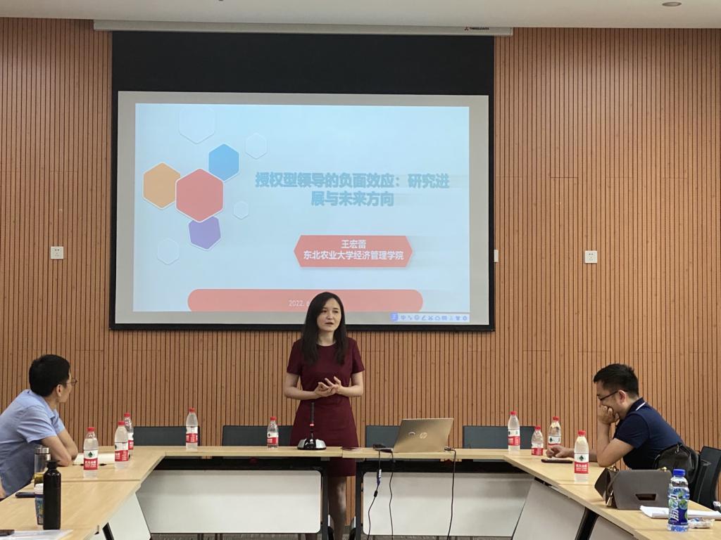 紧接着,王宏蕾从授权型领导的产生机制、研究边界条件、研究方向等多层次介绍授权型领导行为的负面效应。并介绍了从“资源保护、角色理论、内隐领导理论”出发点,寻找更具有实际意义的研究方向。