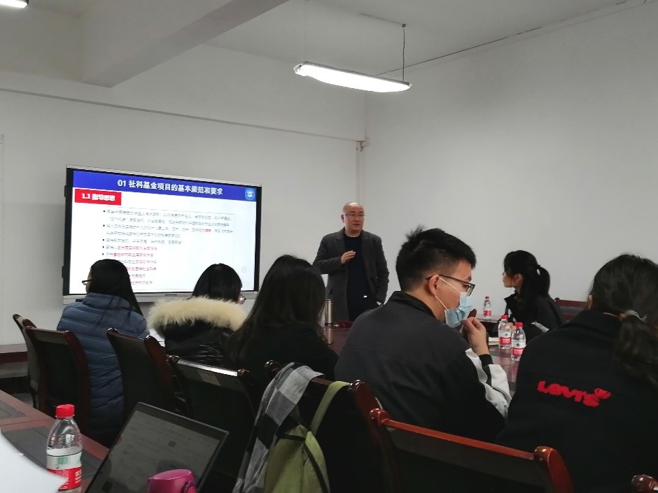 接着,涂教授以“国家社会科学基金项目申报心得交流”为题,从社科基金立项规律分析、社科基金申报书撰写注意事项及技巧等两个方面进行了详细介绍。最后,逐一解答了参会师生提出的问题。