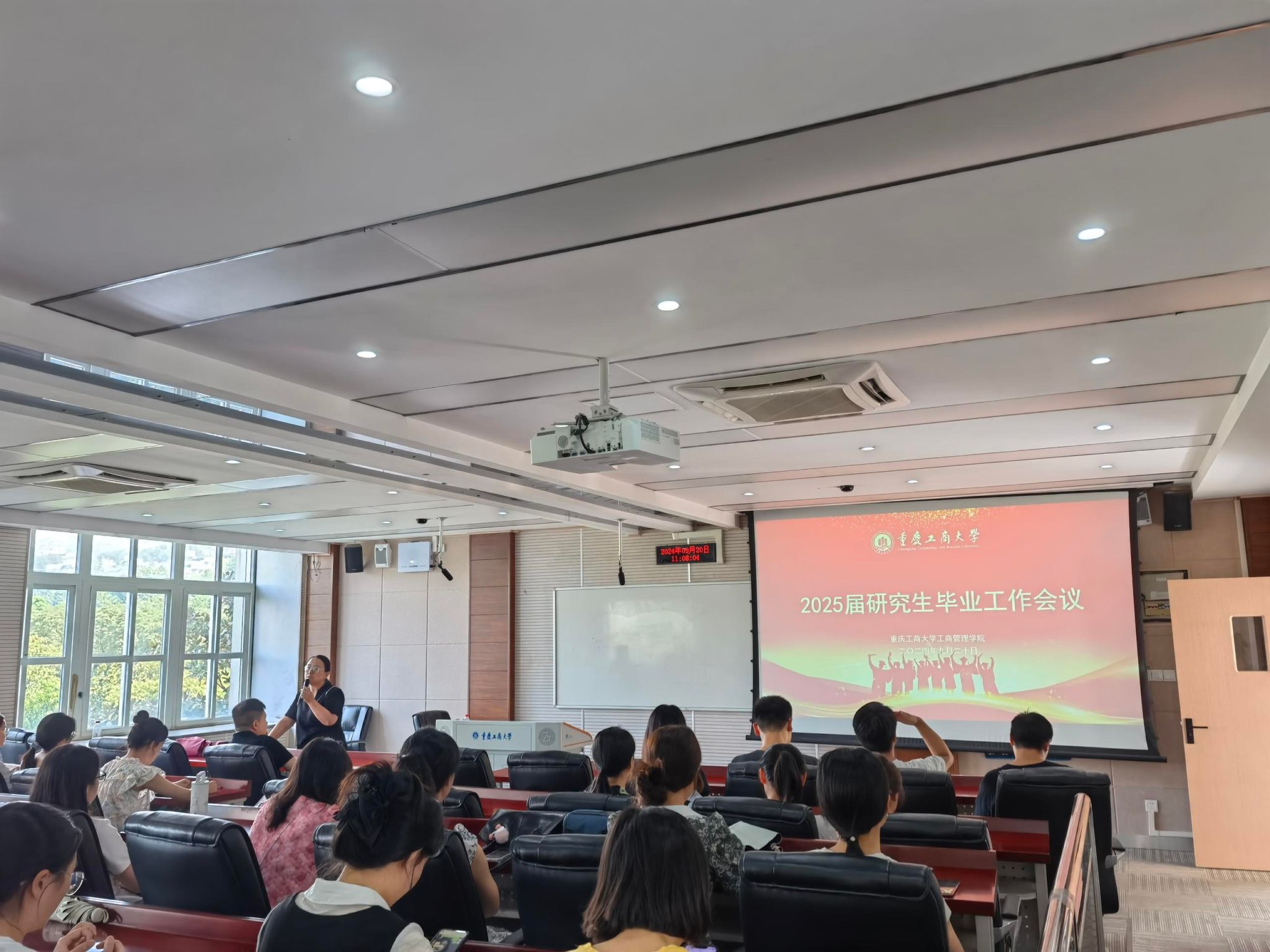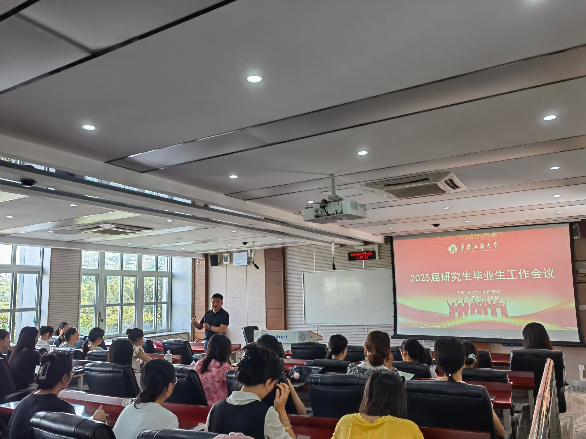 上午10:00,明智楼11306教室,44118太阳成tyc城集团党委书记陈亚惠与院长陈伟为2025届研究生毕业生召开就业工作会议。会上,陈伟院长对研究生各专业就业发展方向进行了详细介绍,鼓励同学们做好学业和职业规划,有学业深造计划的同学把握好学院资源多开展学术研究。陈亚惠书记深入剖析了当前就业市场的复杂形势与积极趋势,特别强调了“金九银十”招聘黄金期的宝贵价值,鼓励毕业生们积极行动,把握机遇,通过广泛投递简历、主动寻求实习机会等方式,尽早明确职业方向,力争在激烈的竞争中脱颖而出,找到心仪的工作岗位。