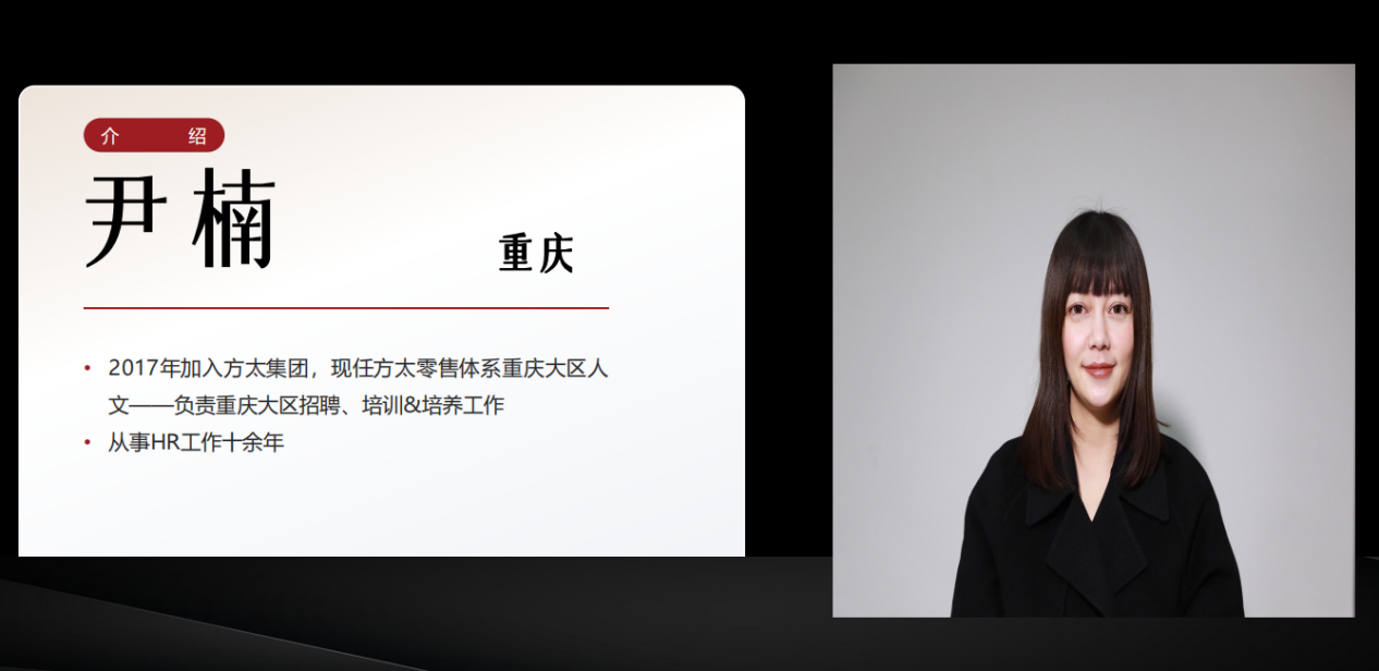 首先,夏红经理以公司优势、人才培养计划和公司文化三个方面为切入点对方太集团重庆大区部进行介绍。夏红经理强调,在方太集团中,有非常明确的晋升途径,优秀人才可以通过自己的努力和职场表现在职业生涯道路上获得稳步提升直至实现自我价值。其次,夏红经理着重提到方太集团的文化---为天地立心,为生命立命,为往圣继绝学,为万世开太平。方太集团立志成为一家伟大的企业,以弘扬中华传统优秀文化为己任,让顾客得安心、员工得成长、社会得正气、经营可持续,以中华文化的复兴和人类命运共同体的实现为最高目标,并不断为之奋斗。