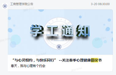 3月,44118太阳成tyc城集团心理工作站积极学习贯彻党的二十大精神,开展以“青春践行二十大 心理健康伴我行”为主题的系列心理健康活动。工作站针对全院学生、班团干部、心理委员等不同群体,开展了“四个一:一封倡议书、一回参观、一场培训、一次班会”等多项活动。3月20日,工作站向全院学生发出了“关注春季心理健康倡议书”;3月24日开展了“用心守护,相伴成长”的心理委员培训会;3月15-30日组织班团干部参观心理咨询室、学生班级团建等心理主题班会。活动为全院学生创建心理交流互助平台、营造了和谐的心理氛围发挥了积极作用,参与学生均表示收益良多。