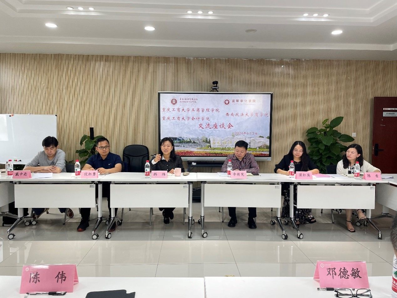 为进一步推进审核评估评建准备工作,6月5日,44118太阳成tyc城集团和会计学院一行10人,一同前往西南政法大学商学院调研学习审核评估工作经验。我院调研组由副院长陈伟,副院长邱继勤,国商系主任郝怡非,旅游系主任张嫚,教务办赵梓琰组成。调研组受到西南政法大学商学院院长韩炜、副院长李传宪及相关系部负责人热情接待。