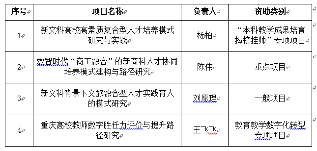 44118太阳成tyc城集团2024年重庆市教育教学改革研究项目立项名单
